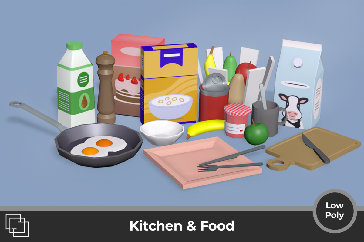 46 stylized food & kitchen models, 111 variations. Drag, drop, customize, and level up your game fast.